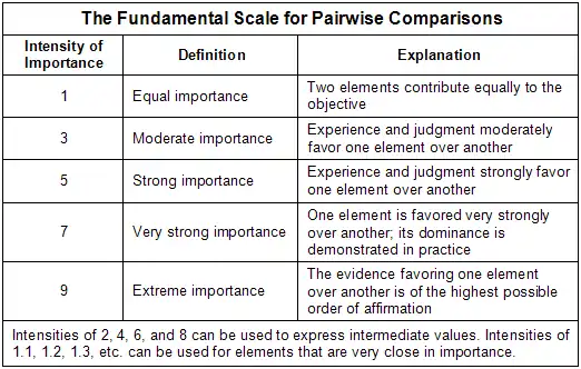 They will use the AHP fundamental scale in assigning the weights: