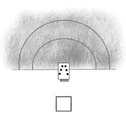 Once a valid ball has come to rest past the line at the back, the player crosses over to the back area called cas de birle and is allowed to throw a second time from where the ball stopped but the miko is removed. Again, the throw has to be through the air until it touches down on a pin platform. There are usually also markers at the back indicating the lines of the pins.