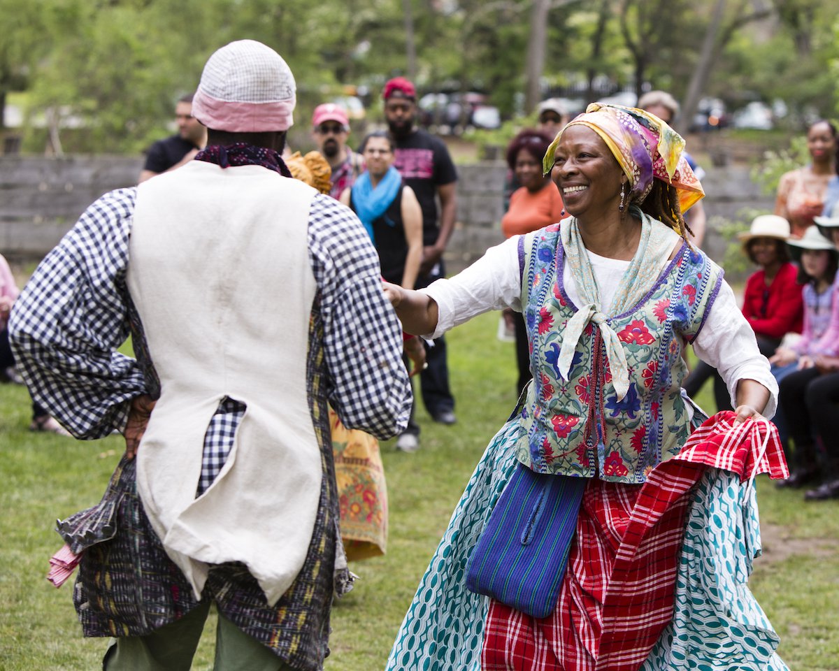 For guests of all ages, Djembes and Dance—which includes a recreation of a colonial Pinkster festival—is a delightful and instructive experience. The occasion recognizes both slavery's tyranny in New York and its final defeat. With more than a century's worth of Hudson Valley Pinkster celebrations combined, it is the only true Pinkster recreation in North America. Children's games like ninepins and stilts, holiday-specific baked products, egg-dyeing, and European-style country dance all derive from Dutch culture. A spectacular parade, storytelling, drumming, dance, and the selection of a Pinkster King all stem from African custom. The Philipses, affluent Dutch merchants, held the Upper Mills property at Philipsburg Manor, which at the time covered more than 50,000 acres. There year-round dwelt a community of 23 enslaved Africans who ran a grist mill and a sizable farm. The Philipses leased out manor property to European tenants, many of whom were Dutch, who planted wheat as a cash crop. It's unknown if the African and Dutch inhabitants of the manor attended one of the larger neighboring metropolitan festivals or hosted their own Pinkster celebrations in Philipsburg throughout the 1700s. [8]