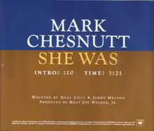 "She Was" is a song written by Jimmy Melton and Neal Coty, and recorded by American country music singer Mark Chesnutt. It was released in February 2002 as the lead-off single from his self-titled album. It peaked at number 11 on the United States country music charts, and number 62 on the U.S. Billboard Hot 100 chart.[1]