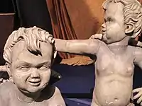 In December 2011, Doctor Who showrunner Steven Moffat announced that Amy and Rory would leave in the seventh series in "heartbreaking" circumstances.[2] Amy's exit was a mutual decision between Moffat and Amy's actor Karen Gillan.[3] Gillan stated that she wanted to go "on a high when the character was at her prime" and to "go with everything that she wants".[3] She wanted her character to have a final ending, and ruled out returning to the show in the future as she felt it would take away from the impact of her final scene.[4][5] Moffat stated he felt "tremendous pressure" writing Amy and Rory's ending.[6] He later revealed that he "completely changed" the ending as he was writing it, feeling the emphasis was wrong.[7] During rewrites Moffat went back and forth deciding whether or not Amy and Rory should live or die. He eventually decided that death would complement the storyline involving the "old, sentimental" and "dangerous" characterisation of the Doctor.[8] At one point he considered making the story that involved the Daleks, but felt the Weeping Angels were a "better fit".[1] Moffat was also interested in coming up with a new form for the Angels, and so he introduced the cherubs.[9] He also said that since the Angels had debuted in "Blink", fans had suggested that the Statue of Liberty could be a Weeping Angel.[1]
